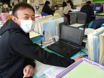 3年生の先生がeライブラリ学習状況をチェックしていました。「TさんとNくんがとても頑張っています。他のみんなもがんばれ!」