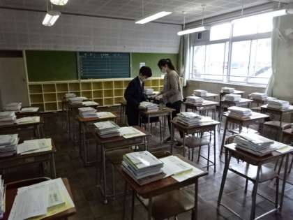 今日は1年生の教科書配布です。みんな元気にあいさつをしてくれました。早く学校が始まってほしいと口々に言っていました。