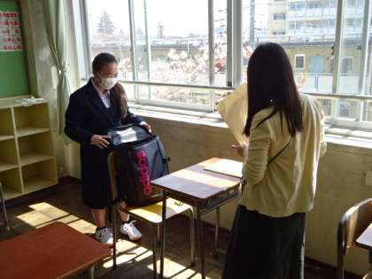 今日は1年生の教科書配布です。みんな元気にあいさつをしてくれました。早く学校が始まってほしいと口々に言っていました。