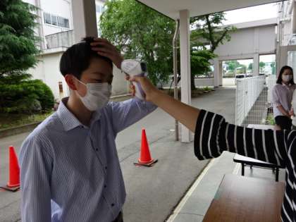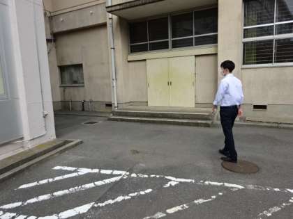 もし、発熱・呼吸器症状・味覚障害等の症状が認められたら、校内には入らず(万が一のリスクを考えて、他の人にうつさないためです)外の待機場所に。
