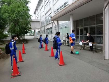 約2か月半ぶりに3年生の教科の授業を始めました。学校として感染症対策はしっかり行っています。1組の様子です。