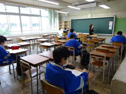 今日は3組と4組が時差登校少人数授業です。3組の様子です。約2月半ぶりの授業です。4つのグループに分かれています。
