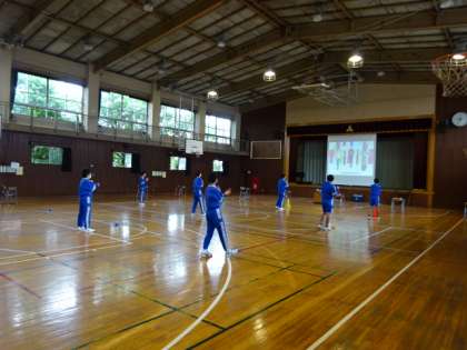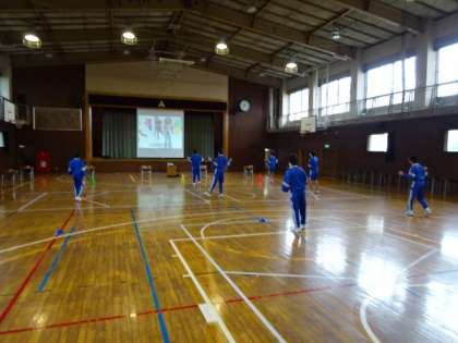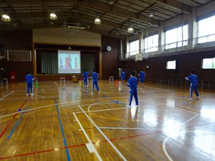 授業の様子です。雨のため男子の体育はサッカーからダンスに変更です。