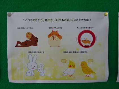 各学年の廊下や階段に貼ってあります。「新型コロナウィルスに負けないために」