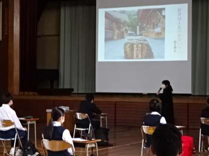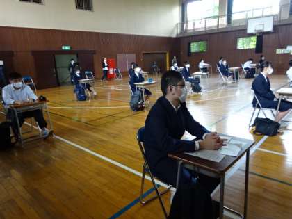 今日の3年生は、体育館で、クラス別の時差登校です。4組。