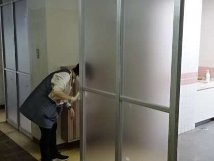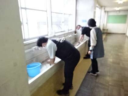 生徒が帰った後は、明日のために消毒です。