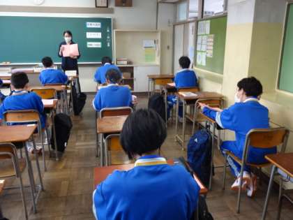 授業開始2日目です。午前のグループの授業風景です。1年3組、音楽。