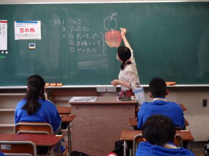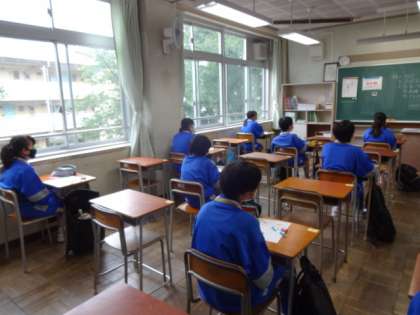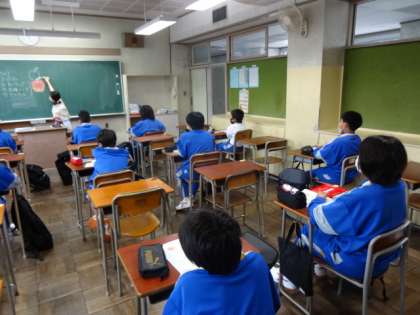 授業開始2日目です。午前のグループの授業風景です。1年4組、英語。