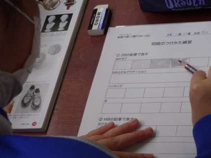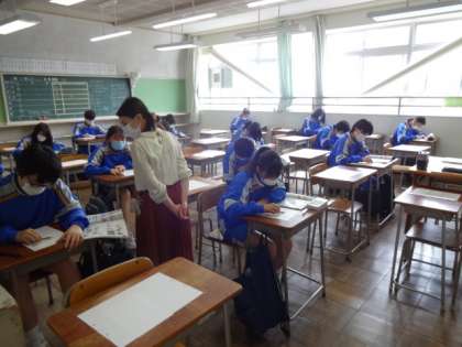 授業開始2日目です。午前のグループの授業風景です。3年3組、美術。