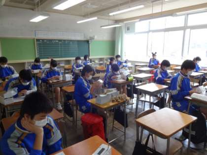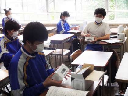 3年4組、技術。2年生の時に製作したラジオが返却されました。