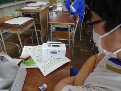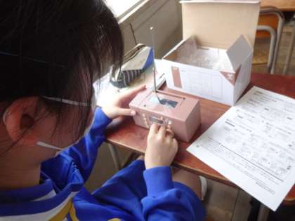 3年4組、技術。2年生の時に製作したラジオが返却されました。