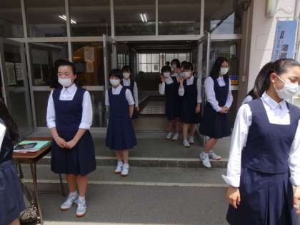 今日は全学年証明書用の個人写真を撮りました。3年生の様子です。