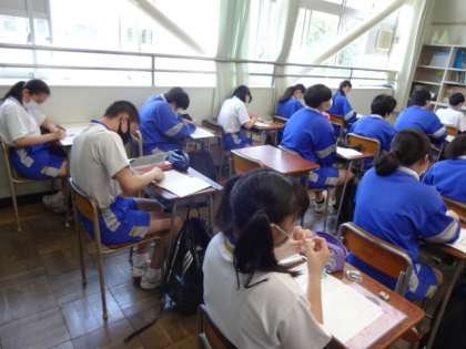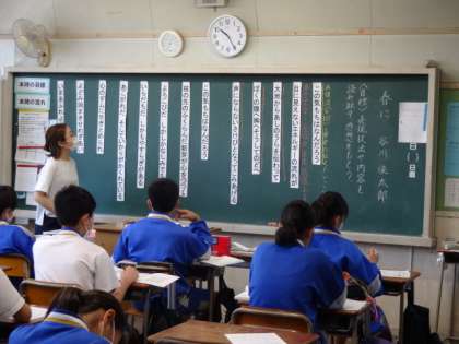 3年生は、今日から、クラス全員で行う教科の授業が始まりました。3組、国語。「表現技法や内容を読み取り、感想をもとう」
