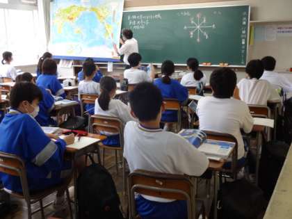 1年5組、社会。「世界のさまざまな地域」