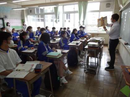 3年1組、英語。ALTケン先生の自己紹介。