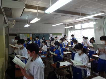 1年5組、国語。「声の伝え方を工夫しよう」