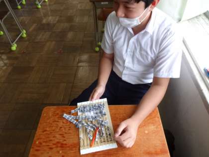 7組、家庭科。「タペストリーを製作する」