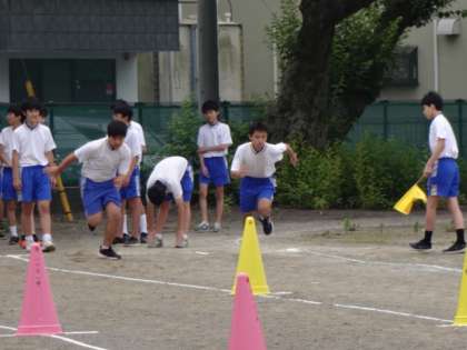 2年3・4組、体育男子。短距離走。