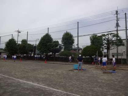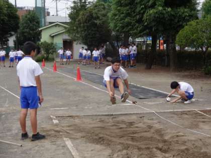 3年3・4組、体育男子。走り幅跳び。