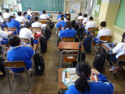 昨日から始まった昼食の様子です。みんな前を向いて、机は離し、出来るだけ会話はせずに……。今は我慢です。ランチョンマット使っていますね。1年生。