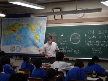 1年5組、社会。「緯度と経度」