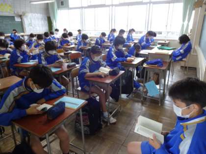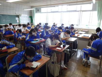 第一中学校は朝読書から始まります。2年生。