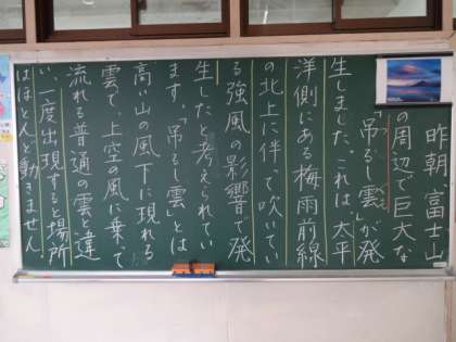 明日で試験一週間前。今日から一週間頑張りましょう。吊るし雲。
