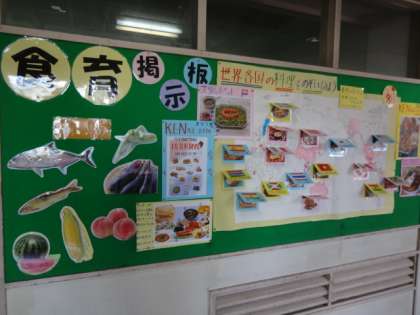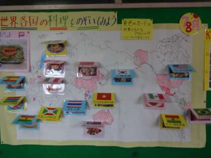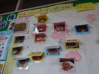今月の食育掲示板は「世界各国の料理をのぞいてみよう」