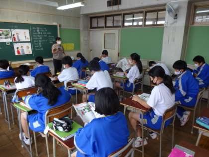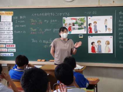 1年1・2組、英語。「人やものを紹介することができる」