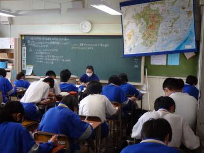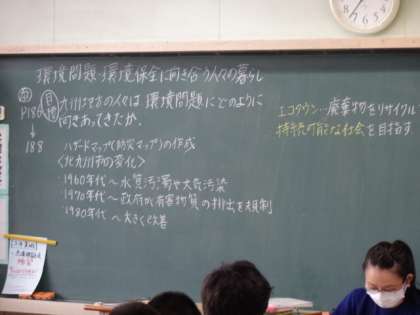 2年1組、社会。「九州地方の人々は環境問題にどのように向き合ってきたか」
