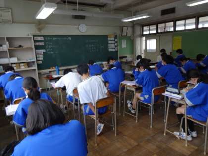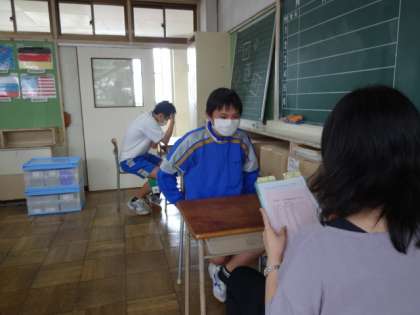 2年3・4組、英語。「不規則動詞過去形音読テスト」
