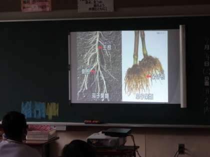 明日から今年度初の定期考査です。今日の授業風景です。1年4組、理科。植物の分類。