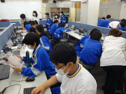 今年度から始めた「学習部」。明日からの「公式戦」に向けて、今日の放課後も活動しています。3年生の先生が応援に来ていました。