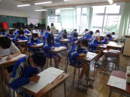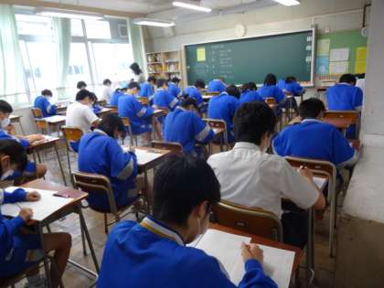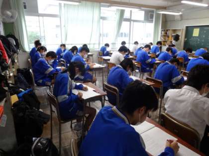 今年度最初の定期考査が始まりました。3年2組。頑張れ!