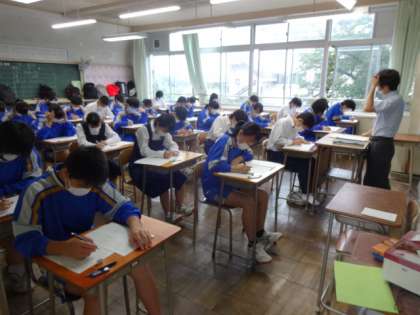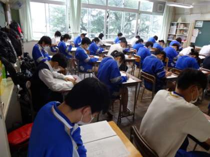 今年度最初の定期考査が始まりました。3年4組。頑張れ!