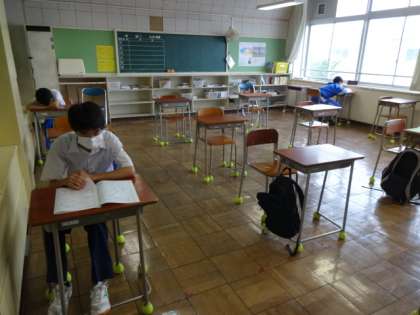 今日は期末考査3日目、最終日です。みんな頑張っています。7組。