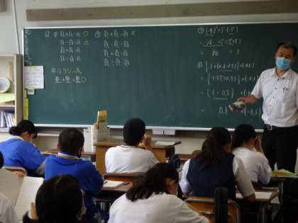 今週は、期末テスト返却・解説が続きます。1年1組、数学。