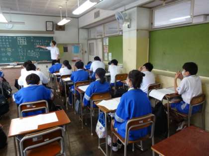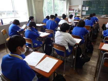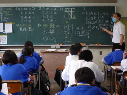 1年2組、数学。テスト返却・解説。間違えたところをしっかり復習!