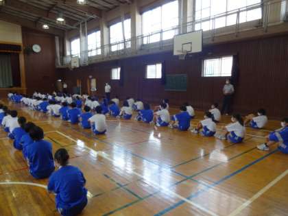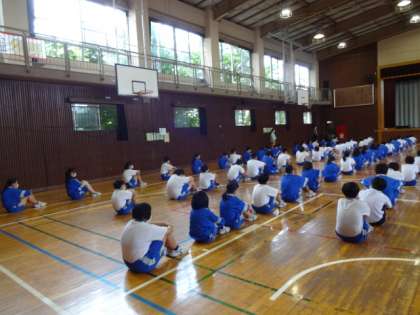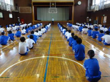 1学期最終日。それぞれの学年が、まとめの学年集会を開いています。2年生。