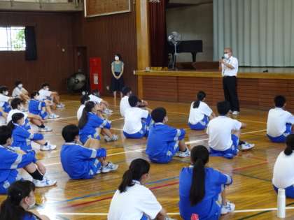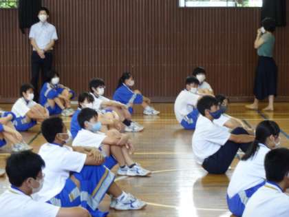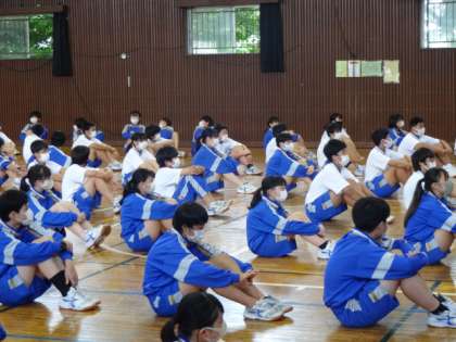1学期最終日。それぞれの学年が、まとめの学年集会を開いています。2年生。