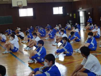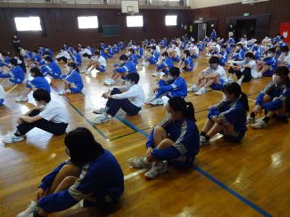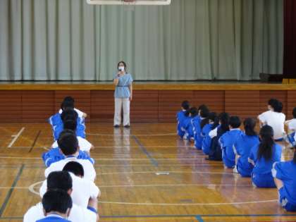 1学期最終日。それぞれの学年が、まとめの学年集会を開いています。3年生。