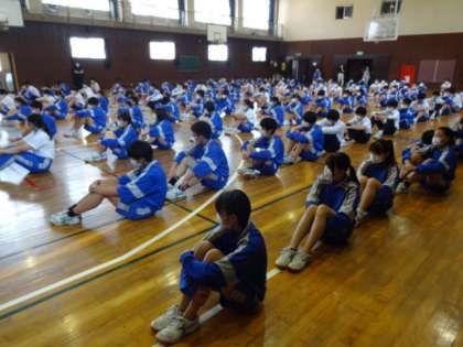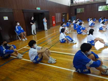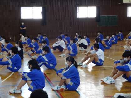 1学期最終日。それぞれの学年が、まとめの学年集会を開いています。3年生。