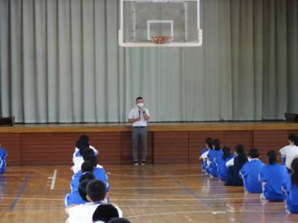 早速、3年生は学年集会を行いました。進路に向けた心構え、コロナ感染症対策、修学旅行等について話をしました。