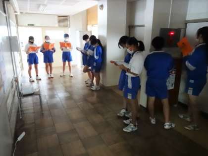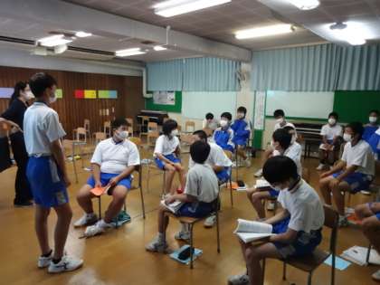 2年1組、音楽。合唱コンクールに向けて、パート別の練習です。男子頑張れ!