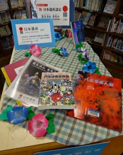 祝 日本遺産認定! 図書室に並んでいました。八王子歴史物語。八王子車人形。
