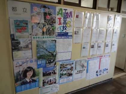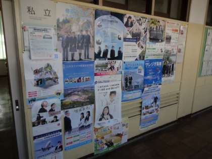 3年廊下の掲示物です。今年度は、説明会や体験などに、人数等の制限がある学校が多いです。早め早めの情報収集が大切です。