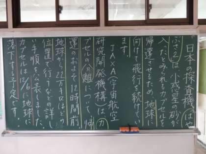 最近はテストが多い。着席チャイム。はやぶさ2。