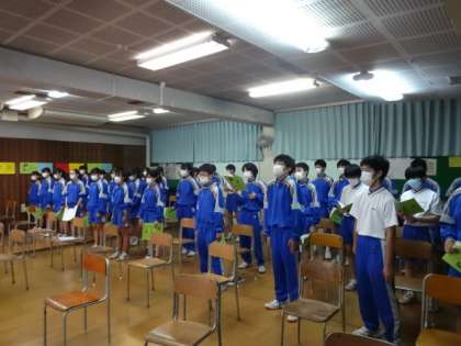 6時間目のクラス練習の様子です。マスクはつけたまま、感染症に気をつけながら。
