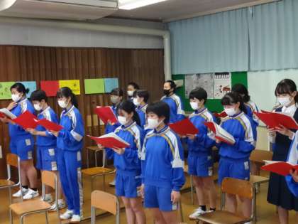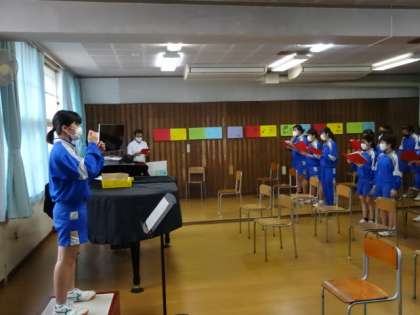 6時間目のクラス練習の様子です。マスクはつけたまま、感染症に気をつけながら。