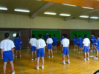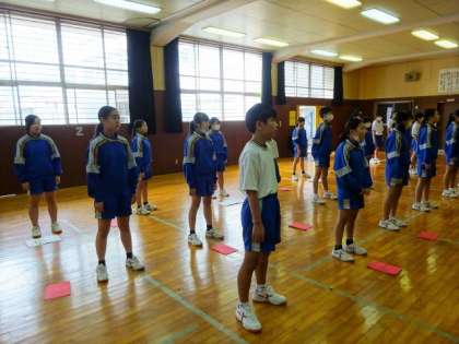 6時間目のクラス合唱練習の様子です。体育館や格技室など大きな場所では間隔をとって、マスクを外して練習します。